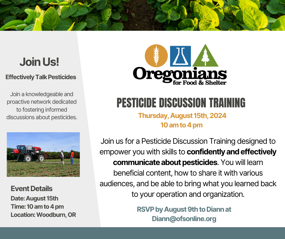Our members work to provide high quality food and fiber products for Oregon and the world. To do this, they need access to modern tools that support food and fiber security, including pesticides, fertilizers, and biotechnology. We advocate, engage, and educate on behalf of our members to promote science, innovation, and stewardship with respect to these essential production tools.
